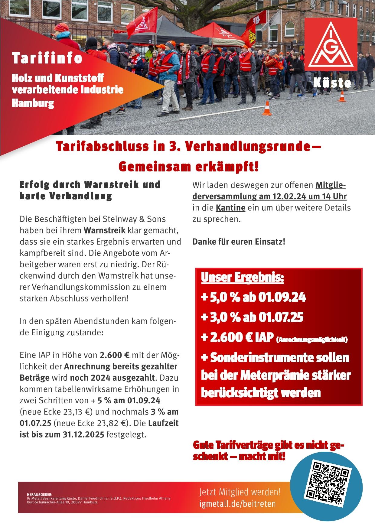 Dieses starke Ergebnis war nur möglich, weil die Beschäftigten von Steinway & Sons während der Tarifrunde mit Aktionen und einem Warnstreik gezeigt haben, dass sie ihre Forderungen durchsetzen werden.