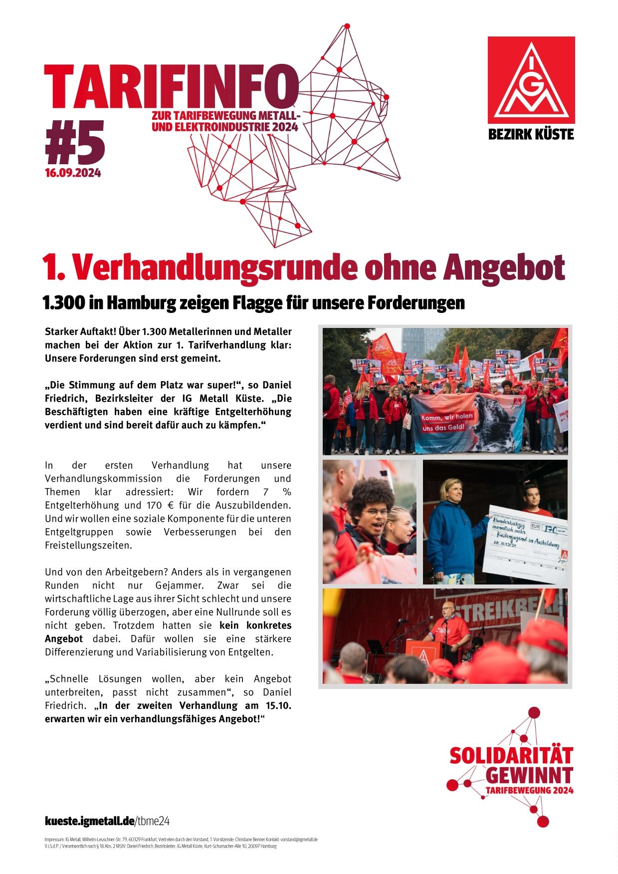 „Schnelle Lösungen wollen, aber kein Angebot unterbreiten, passt nicht zusammen“, so Daniel Friedrich. „In der zweiten Verhandlung am 15.10. erwarten wir ein verhandlungsfähiges Angebot!“